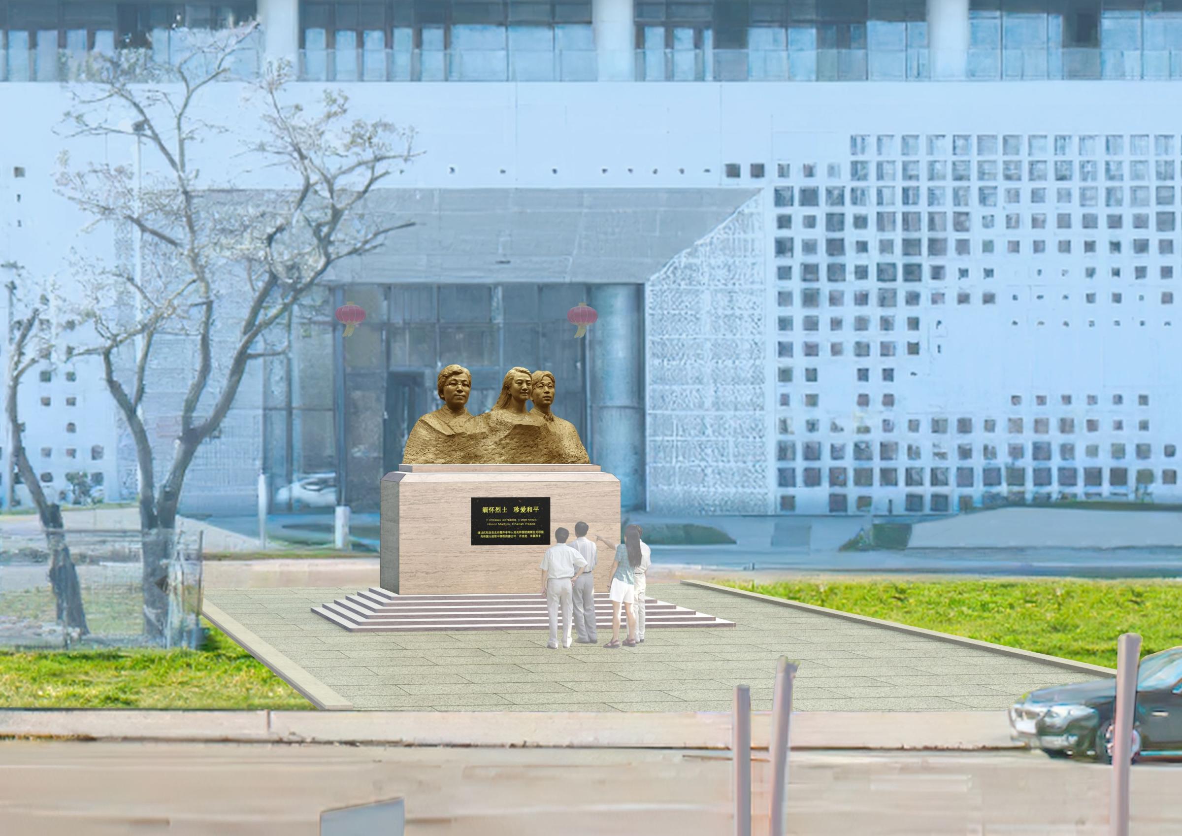 2020年,陈德新应邀参加在塞尔维亚贝尔格莱德市举行的中国美术作品展,他特意来到中国驻南联盟被炸使馆旧址寻找创作灵感。“当时房子还是被炸毁状态,附近有一高一矮两块纪念碑,其中一块缅怀三烈士的纪念碑。”陈德新发现,当时有不少中国人在烈士纪念碑前摆上鲜花,祭奠三位英烈,但是现场没有雕像或照片。