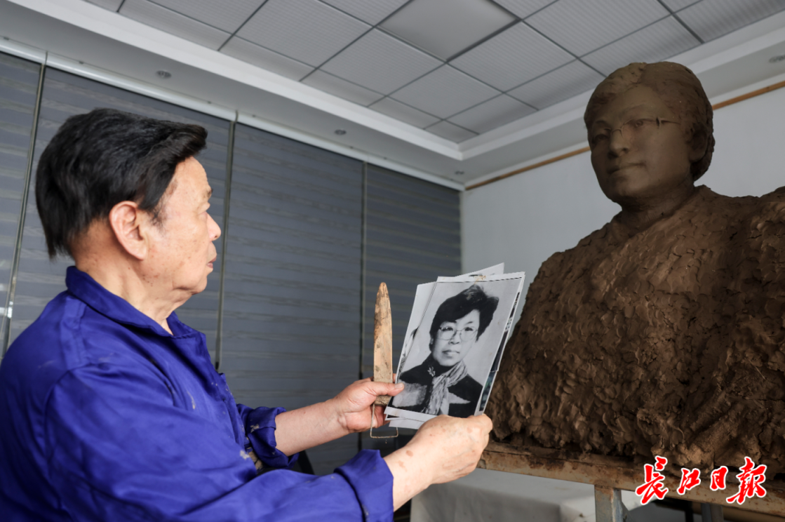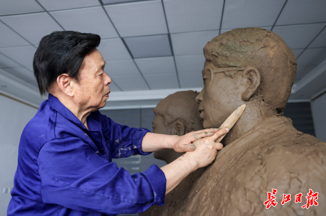 雕塑家陈德新通过对比照片调整雕像细节。胡冬冬 摄
