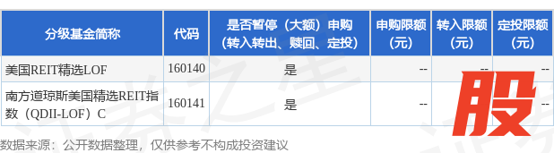 本站消息,8月27日南方基金管理股份有限公司发布《关于南方道琼斯美国精选REIT指数证券投资基金(QDII-LOF)2025年9月1日暂停申购、赎回和定投业务的公告》。公告中提示,为2025年9月1日(美国劳动节)为纽约证券交易所节假日,本基金暂停申购、赎回及定投业务,自2025年9月1日起南方道琼斯美国精选REIT指数证券投资基金(QDII-LOF)2025年9月1日暂停申购、赎回和定投业务,下属分级基金调整明细如下: